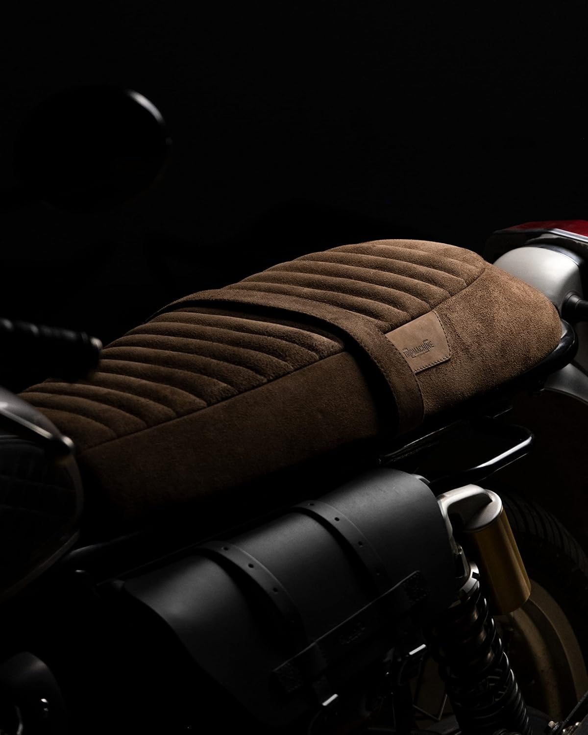 Genuine Leather Touring Seat Compatible with Royal Enfield Interceptor 650 / Continental GT 650, Slim Profile Seat With Rain Cover by Trip Machine Company - Dark Brown/Tobacco, Suede